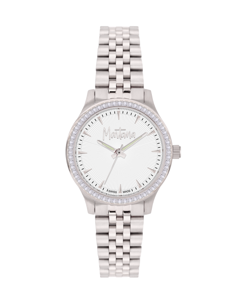 تألقي بأناقة مع ساعة مونتانا النسائية الفاخرة، المصنوعة في سويسرا من الاستانلس ستيل المقاوم 316L، المعروف بجودته العالية والمستخدم في الساعات الفاخرة. تتميز الساعة بإطار مرصع بالألماس بحجم 30 مم . مزودة بحزام من الاستانلس ستيل لتكمل التصميم المتقن، كما أنها مقاومة للماء لتناسب استخدامك اليومي. تأتي الساعة مغلّفة في علبة فاخرة مع تغليف مجاني، لتكون الهدية المثالية لكل مناسبة.