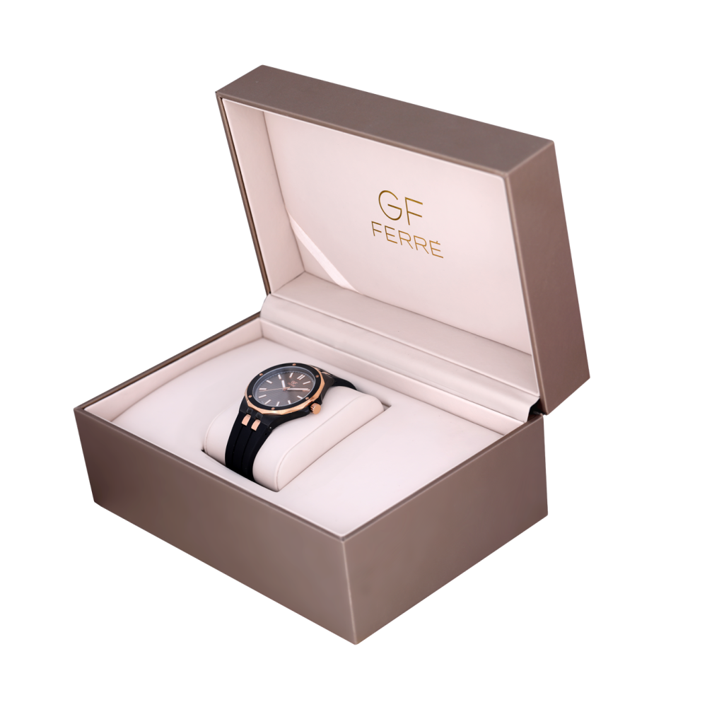 تألّق بساعة رجالية فاخرة من ماركة جي إف فيرري السويسرية. مصنوعة من الاستانلس ستيل المصقول المقاوم، تتميز بإطار دائري أنيق مقاس 40 ملم مزين بستة مفاتيح سكروز جميلة تضفي عليها لمسة من القوة والفخامة، حزام ربر جميل . تأتي بمينا ذو تفاصيل مربعة بارزة، مما يضفي على الساعة طابعاً عصرياً مميزاً. مقاومة للماء حتى 50 مترًا، هذه الساعة مثالية للمغامرات اليومية. تُقدّم في علبة فاخرة مع تغليف مجاني، لتكون الهدية المثالية للرجل الأنيق.