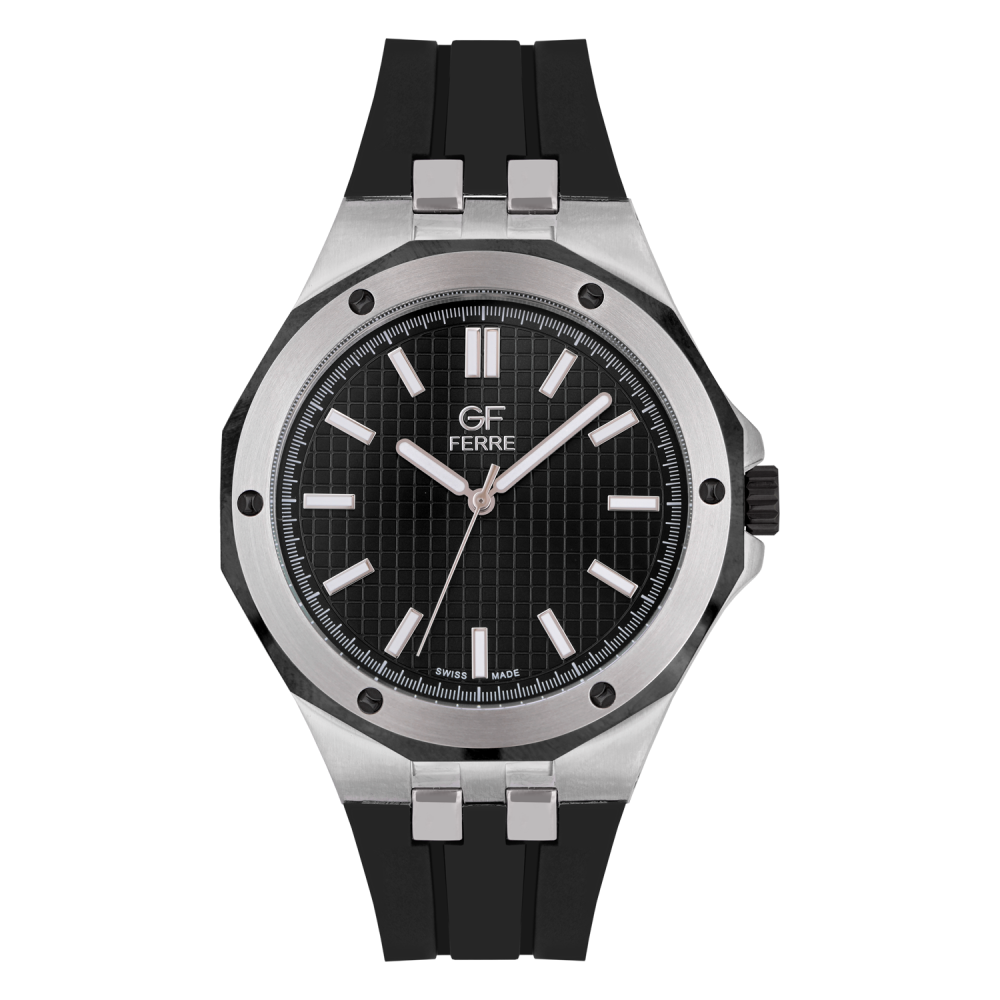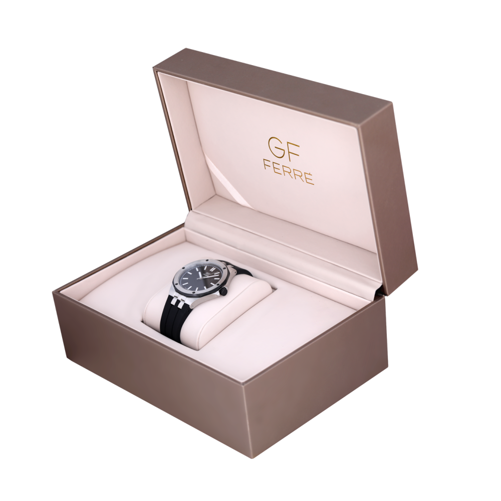 تألّق بساعة رجالية فاخرة من ماركة جي إف فيرري السويسرية. مصنوعة من الاستانلس ستيل المصقول المقاوم، تتميز بإطار دائري أنيق مقاس 40 ملم مزين بستة مفاتيح سكروز جميلة تضفي عليها لمسة من القوة والفخامة، حزام ربر جميل . تأتي بمينا ذو تفاصيل مربعة بارزة، مما يضفي على الساعة طابعاً عصرياً مميزاً. مقاومة للماء حتى 50 مترًا، هذه الساعة مثالية للمغامرات اليومية. تُقدّم في علبة فاخرة مع تغليف مجاني، لتكون الهدية المثالية للرجل الأنيق.