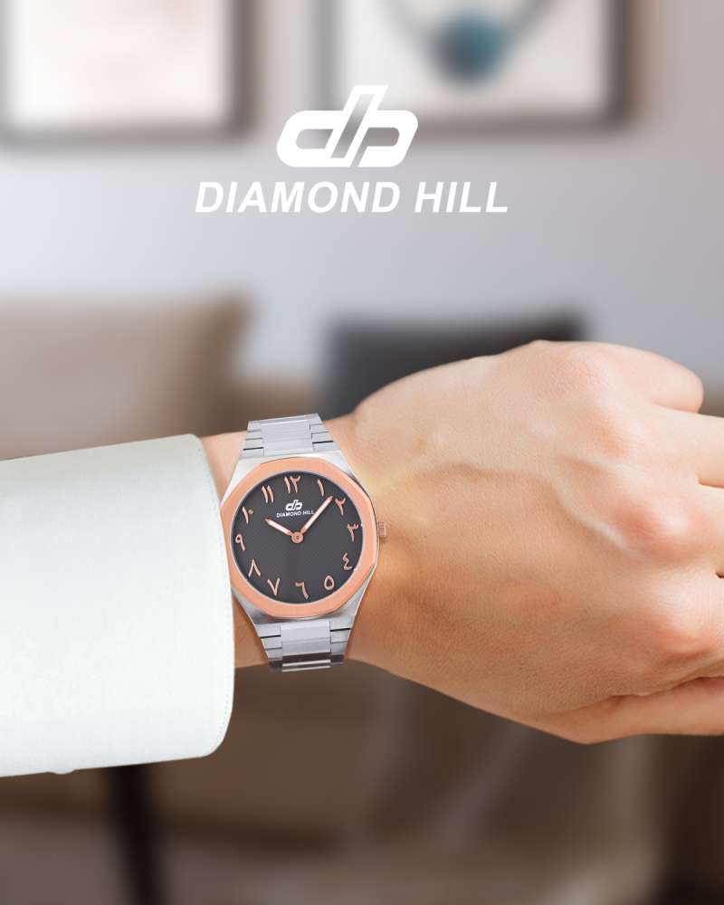 تقدم ساعة دايموند هيل الرجالية مزيجاً مثالياً من الأناقة والمتانة. مصنوعة بالكامل من الاستانلس ستيل المقاوم، تأتي بإطار مضلع بمقاس 39 ملم، ومينا بترقيم عربي لسهولة القراءة. مقاومة للماء حتى عمق 50 متراً، مما يجعلها مثالية للاستخدام اليومي. تُقدم في علبة فاخرة مع تغليف مجاني، لتكون الهدية المثالية للرجل العصري.
