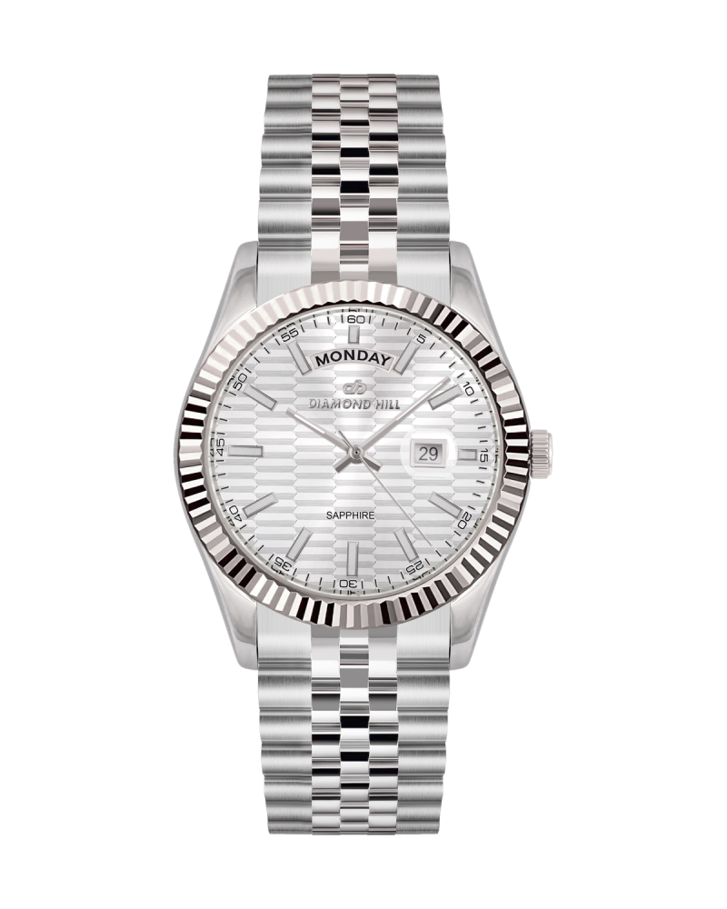 ساعة رجالية ماركة دايموند هيلمن الاستالس ستيل المصقول بعناية ، اطار مقاس 40 بماكينة يابانية ، ميناء ازرق بتفاصيل جميلة برزت بانعاكس الضوء والظل، وترقيم وشعار بارز ، نافذة واضحة في الأعلى لعرض اليوم وعلى اليمين لعرض التاريخ ، زجاج من الزفير ، حزام من الاستانلس ستيل ، الساعة تاتي بعلبة فاخرة