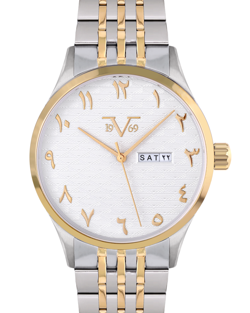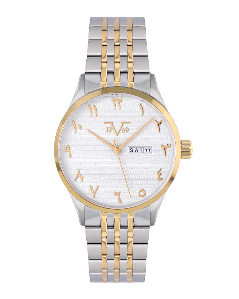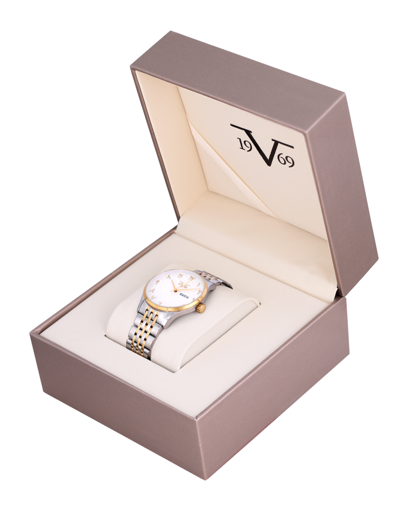 ساعة رجالية ماركة V19.69 فضي ذهبي مينا ابيض موديل VTTGPW0011G
