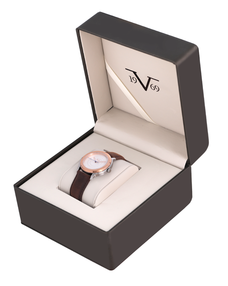 ساعة رجالية ماركة V19.69 فضي روز مينا فضي جلد بني موديل VTTRGW26537G