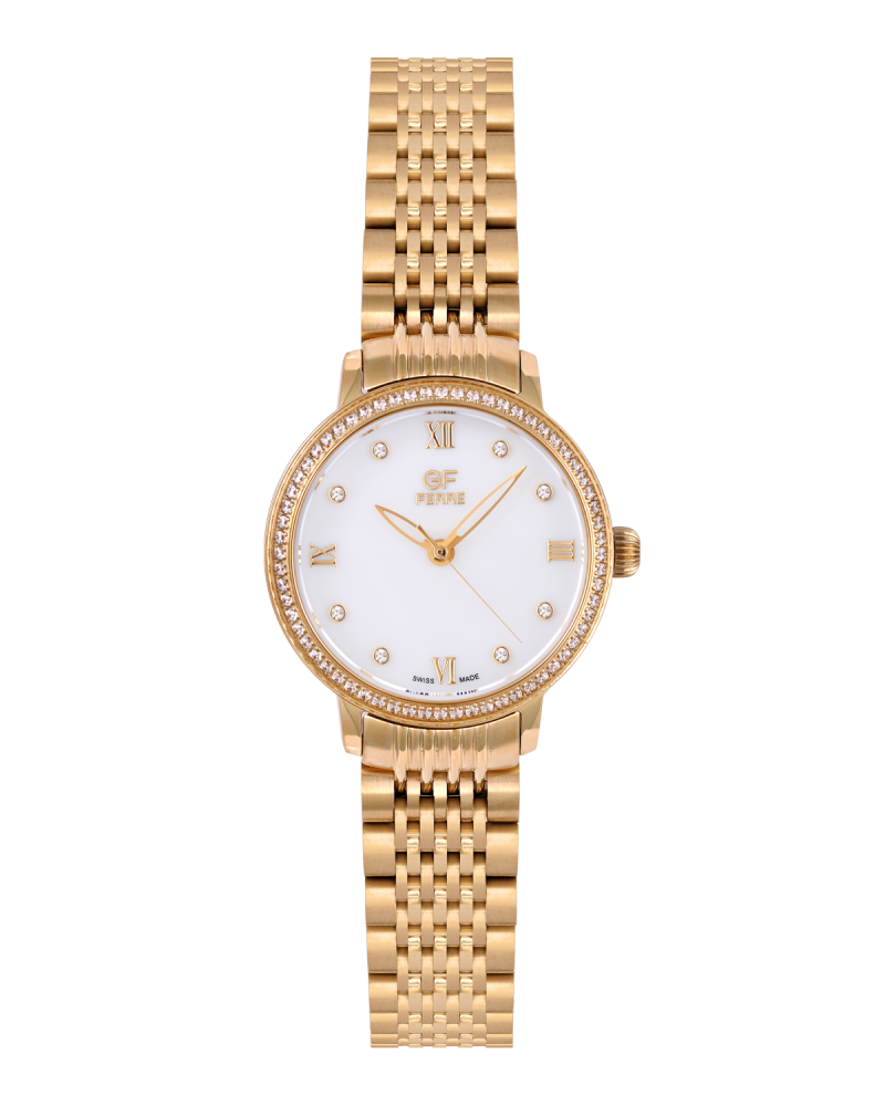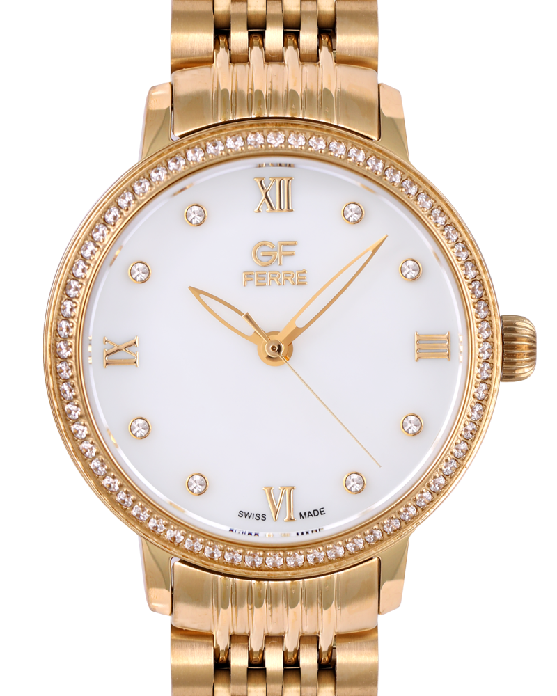 ساعة نسائية صناعة سويسرية ماركة جي اف فيرري ذهبي ميناء صدفي GFGPW2177