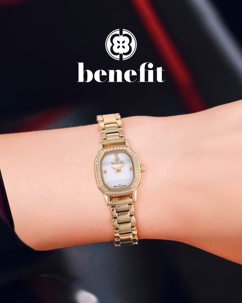 ساعة نسائية أنيقة من ماركة بنفيت، تجمع بين البساطة والرقي في تصميم هندسي ناعم يعكس أنوثة راقية وتفاصيل دقيقة.