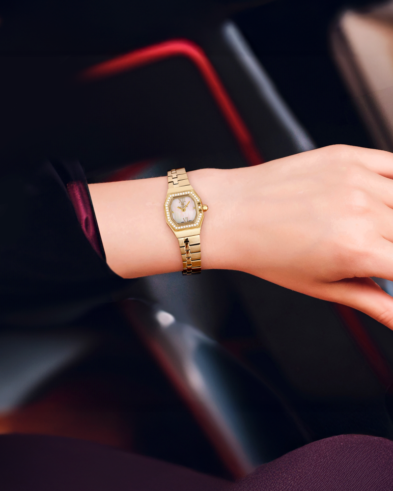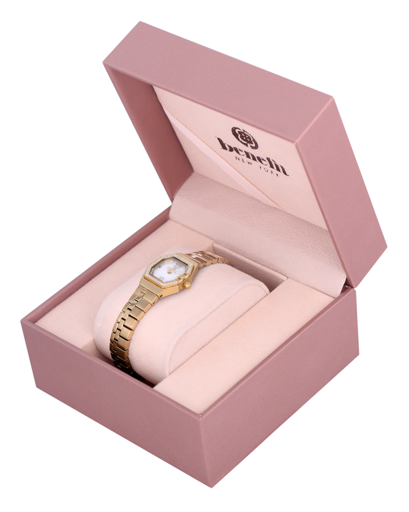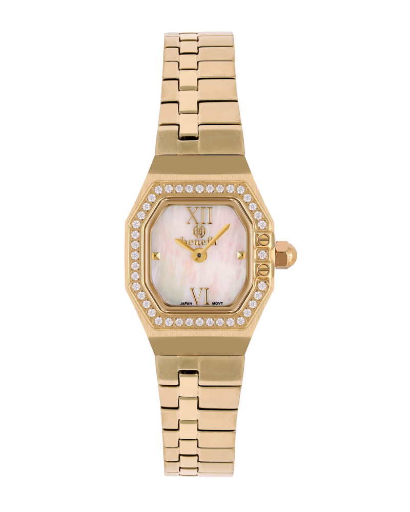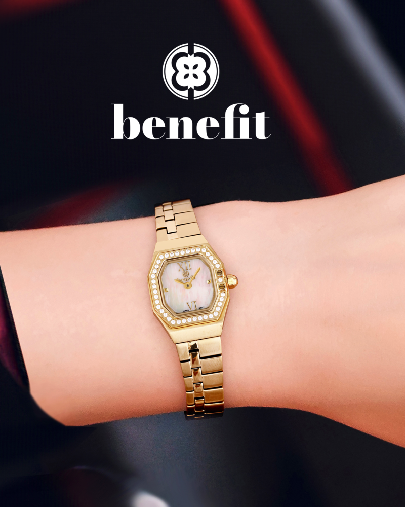 ساعة نسائية فاخرة من ماركة بنفيت تجمع بين الأناقة العصرية والدقة اليابانية في تصميم راقٍ يعكس التوازن بين الفخامة والعملية.