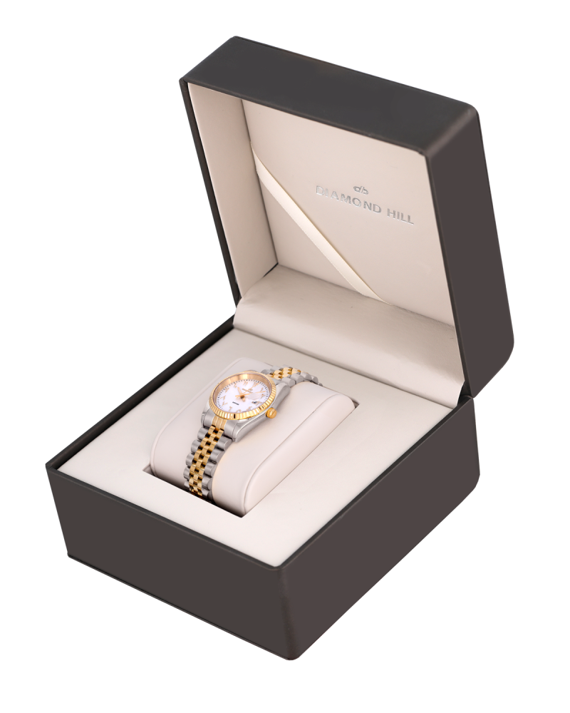 ساعة دايموند هيل النسائية هي تجسيد للأناقة العصرية والفخامة المميزة. مصنوعة من الستانلس ستيل المقاوم للعوامل الخارجية، وبماكينة يابانية فائقة الجودة لضمان الدقة والاستدامة. تتميز بمينا أنيق بترقيم شرقي كلاسيكي ونافذة عرض التاريخ لتبقى على اطلاع بأهم لحظاتك. إطارها الرقيق بحجم 30 ملم يجعلها مريحة للارتداء ويضفي لمسة راقية على معصمك. الساعة مقاومة للماء، مما يضيف مستوى إضافيًا من الحماية في جميع الظروف. تأتي الساعة في علبة فاخرة، مع تغليف مجاني لتكون هدية مثالية لكل المناسبات