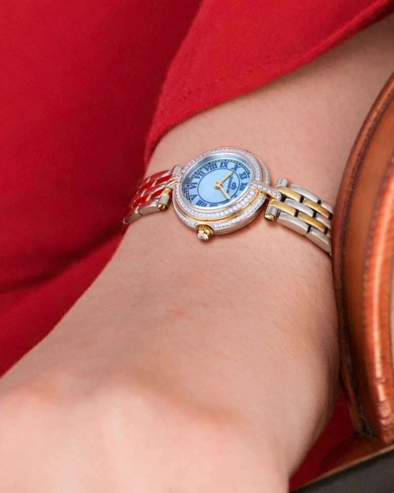 المينا الصدفي للساعة مزين بأرقام رومانية تقليدية تضفي عليها طابعاً كلاسيكياً وعصرياً في آن واحد. ولتضمن لك الراحة والأمان، فإن الساعة مقاومة للماء حتى عمق 50 متراً، مما يجعلها مناسبة للاستخدام اليومي وللأنشطة المختلفة.
