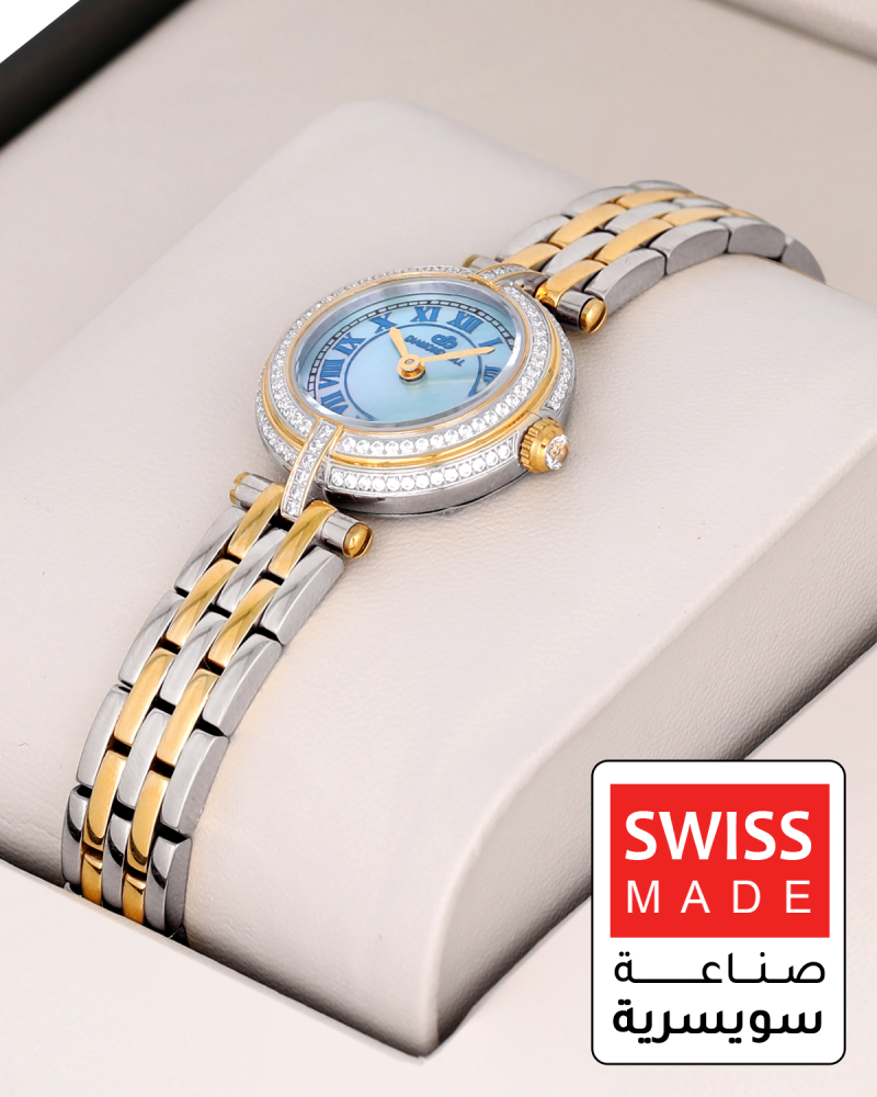 • ساعة دايموند هيل النسائية الفاخرة • صناعة سويسرية بجودة عالية • هيكل من الفولاذ المقاوم للصدأ بالكامل • إطار رقيق بمقاس 23 ملم • مرصعة بخطين مزدوجين من أحجار الزركون • مينا صدفي بأرقام رومانية • مقاومة للماء حتى 50 متراً • تأتي في علبة فاخرة • تغليف مجاني لكل عملية شراء