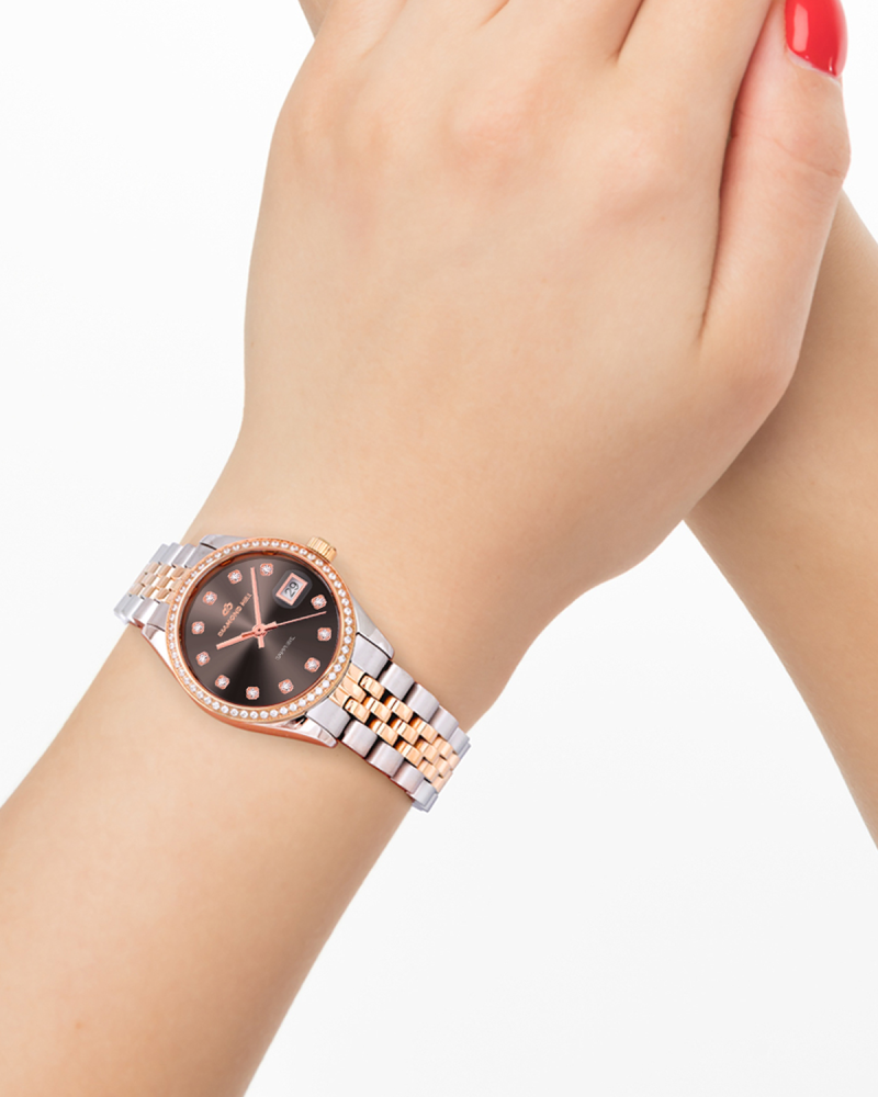 ساعة دايموند هيل النسائية هي تجسيد للأناقة العصرية والفخامة المميزة. مصنوعة من الستانلس ستيل المقاوم للعوامل الخارجية، وبماكينة يابانية فائقة الجودة لضمان الدقة والاستدامة. تتميز بمينا أنيق ونافذة عرض التاريخ لتبقى على اطلاع بأهم لحظاتك. إطارها الرقيق بحجم 26 ملم يجعلها مريحة للارتداء ويضفي لمسة راقية على معصمك. الساعة مقاومة للماء، مما يضيف مستوى إضافيًا من الحماية في جميع الظروف. تأتي الساعة في علبة فاخرة، مع تغليف مجاني لتكون هدية مثالية لكل المناسبات