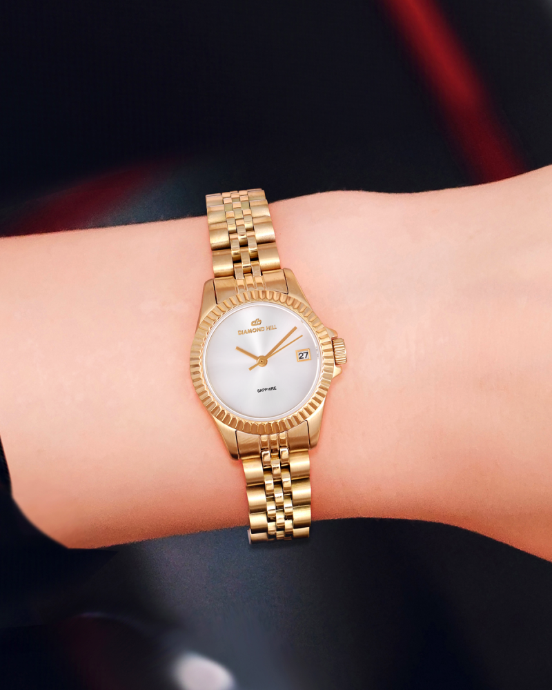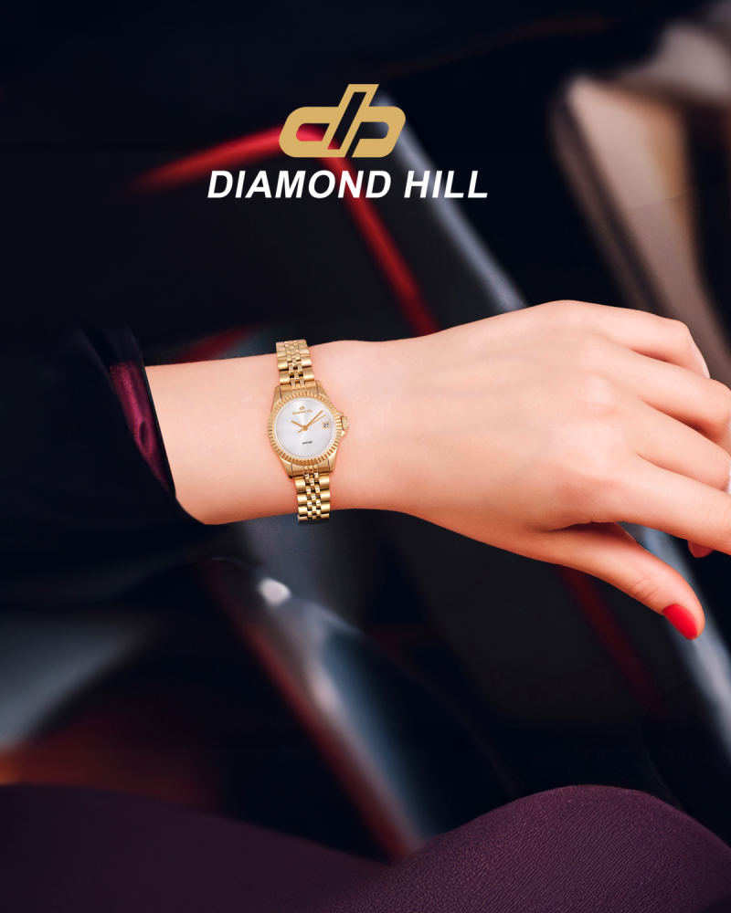 استلهمي أناقتك من تفاصيل هذه الساعة النسائية الراقية من دايموند هيل، المصممة لتجمع بين الرقي والبساطة في إطار هندسي أنيق.