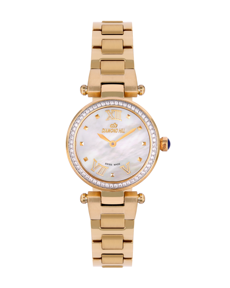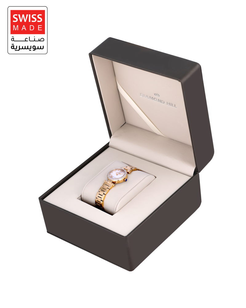 ارتقي بإطلالتك مع هذه الساعة النسائية الفاخرة من دايموند هيل، حيث يتلاقى التصميم السويسري الرفيع مع البريق الأنثوي الناعم.