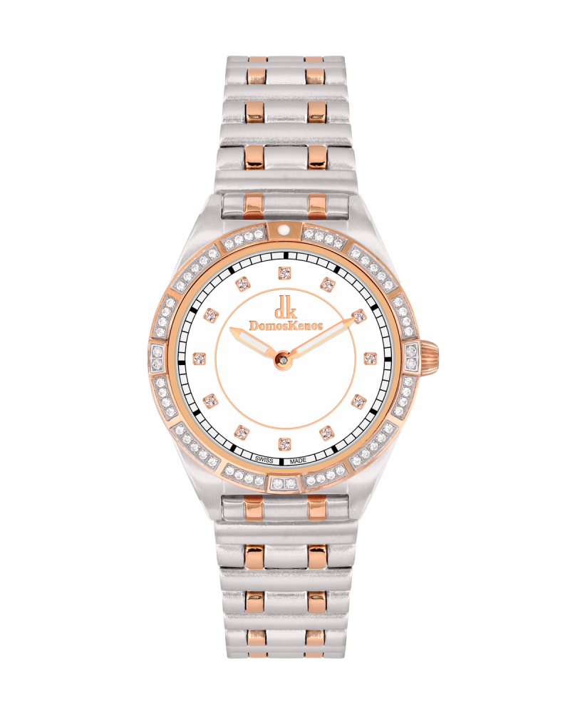 ساعة نسائية ماركة دي كي صناعة سويسرية لون فضي روز مينا ابيض BJ8062L