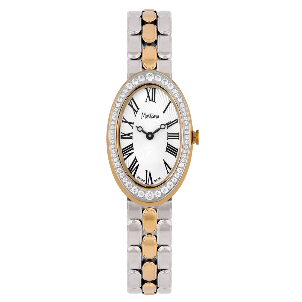 تقدم لك ساعة مونتانا النسائية، الجوهرة السويسرية الأنيقة التي تجمع بين الفخامة الكلاسيكية والتكنولوجيا المتقدمة. مصممة بإطار بيضاوي كلاسيكي يبرز جمال معصمك، وتزينها أحجار الزركون البراقة التي تضيف لمسة من التألق والسحر.