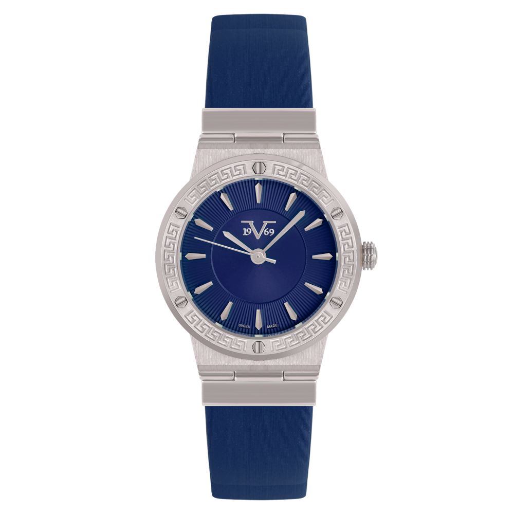 ساعة نسائية ماركة V19.69 فضي مينا ازرق حزام جلد موديل 7117