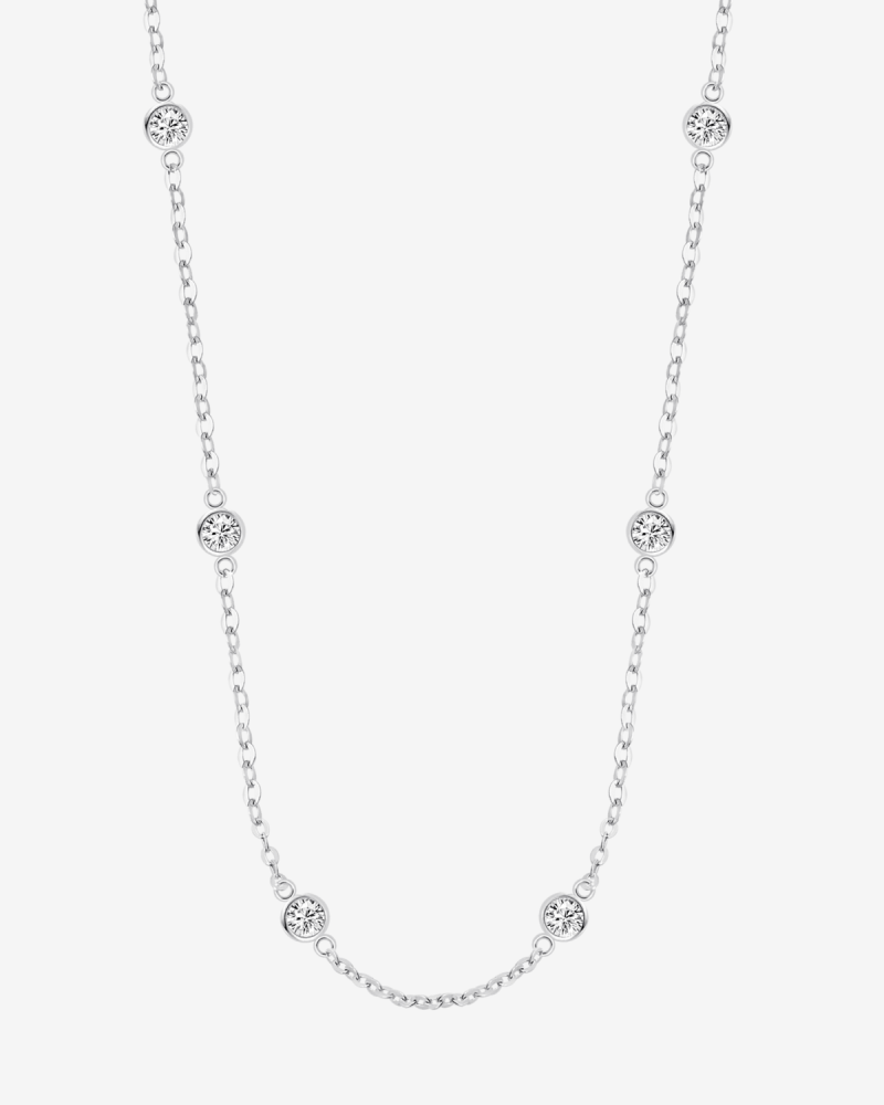 عقد أنيق باللون الفضي مع لمسة نهائية لامعة، خفيف الوزن، مثالي للاستخدام اليومي والمناسبات الخاصة.