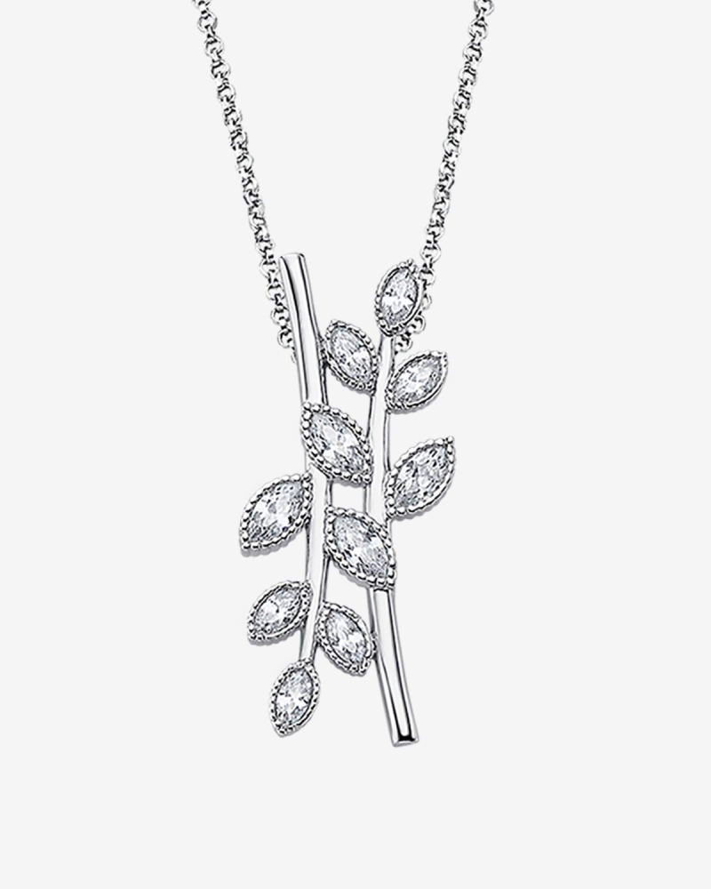عقد فضي لامع مرصّع بأحجار زركون بيضاء بأحجام متنوّعة، يمنحك إشراقة ملفتة وأناقة خالدة في كل مناسبة.
