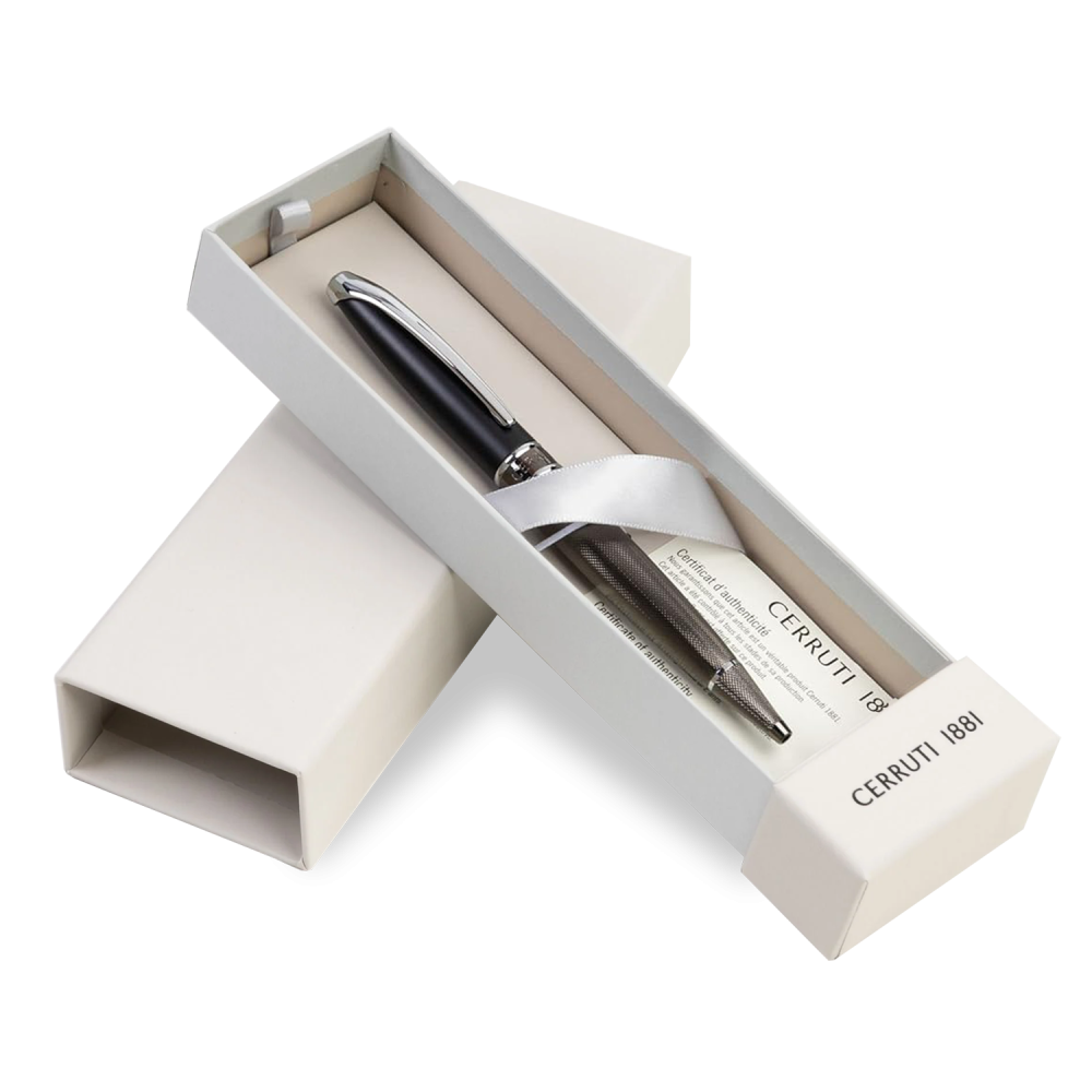 • قلم "Abbey" مبني على واحدة من أكثر الأشكال الأيقونية في خط الكتابة من Cerruti. تم إعادة ابتكاره الآن بدمج التشطيبات السوداء غير اللامعة مع برميل سفلي منقوش بقطع الألماس، مما يجعله عصريًا وأنيقًا.
